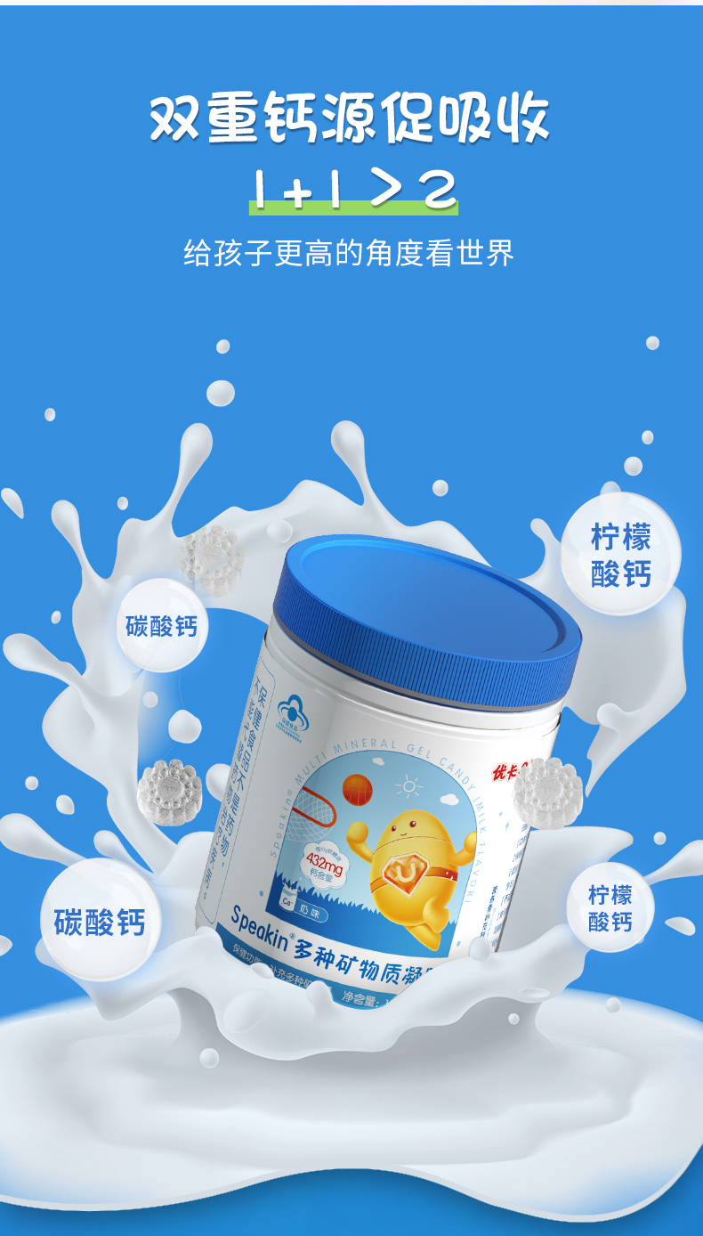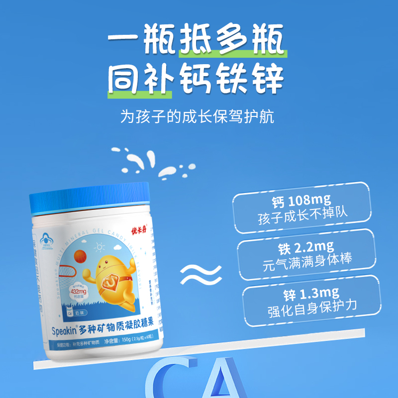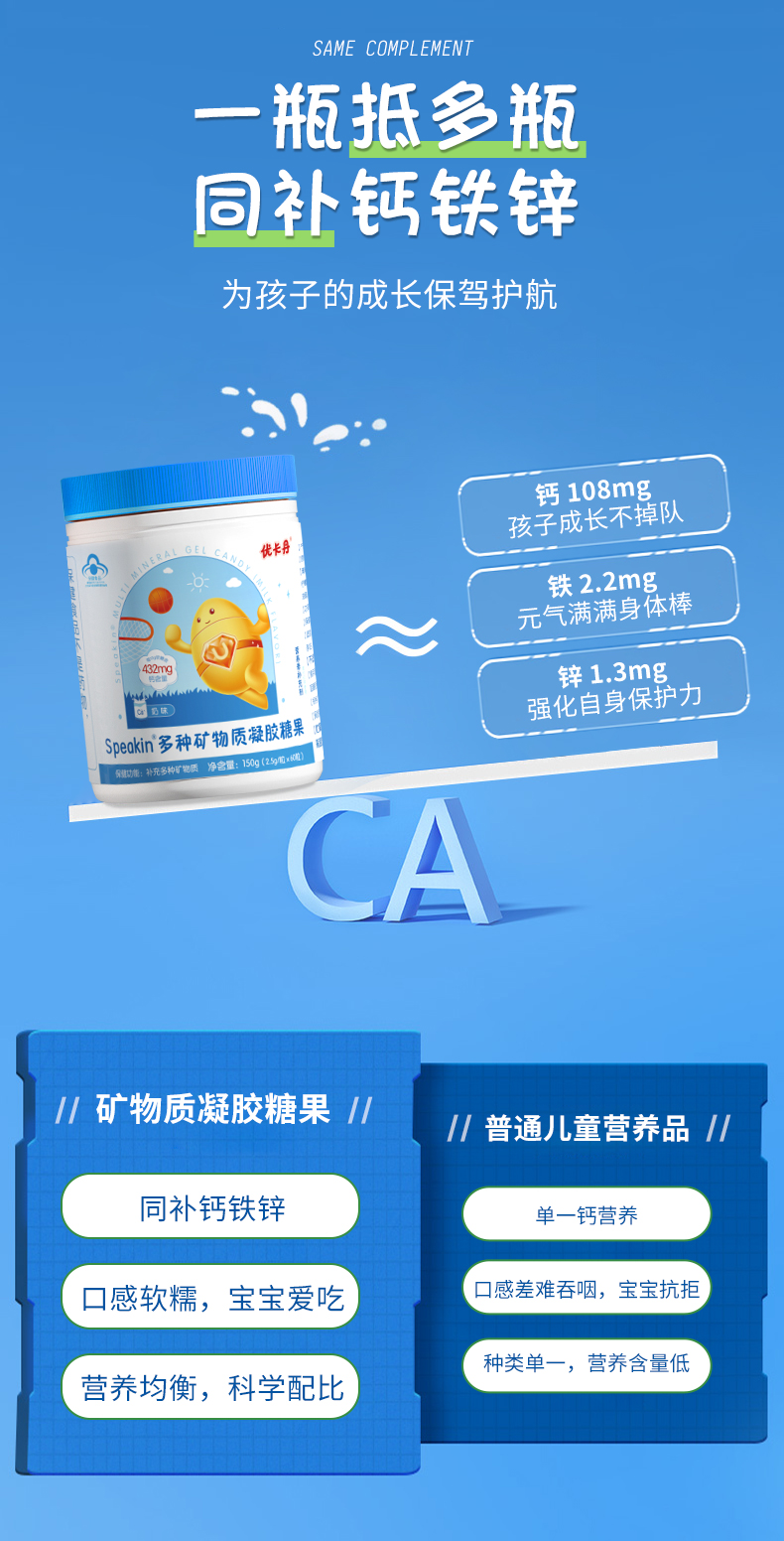 一瓶同補(bǔ)鈣鐵鋅,藍(lán)帽認(rèn)證為孩子的成長保駕護(hù)航