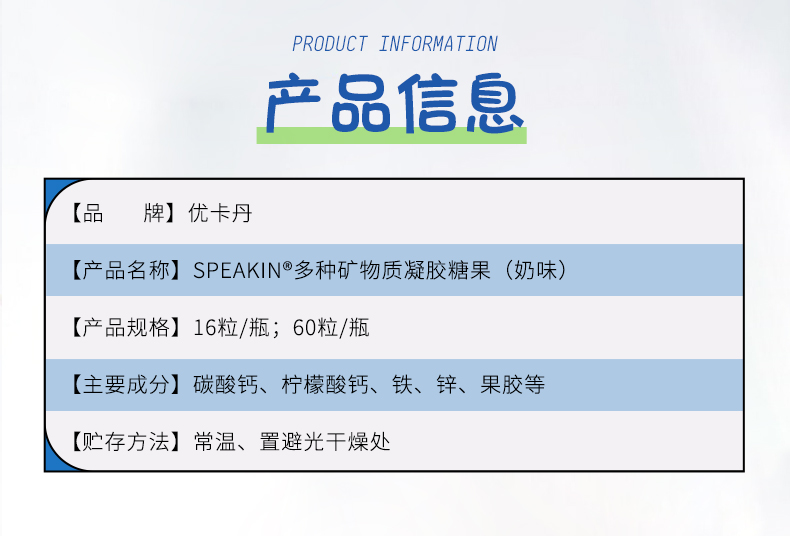 名稱:優(yōu)卡丹Speakin多種礦物質(zhì)凝膠糖果(奶味)