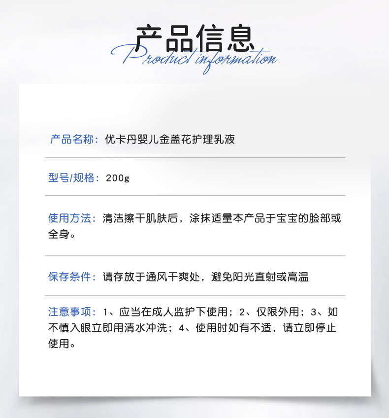 產(chǎn)品名稱:優(yōu)卡丹嬰兒金蓋花護(hù)理乳液