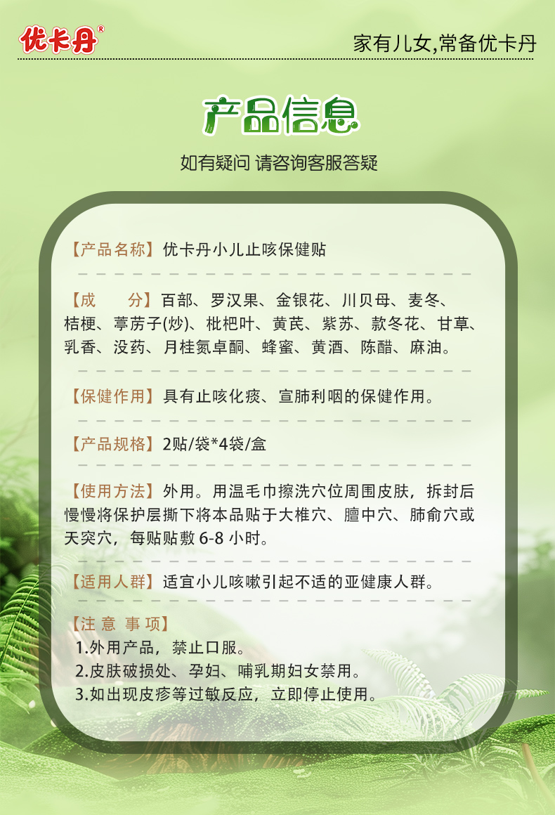 【產(chǎn)品名稱】優(yōu)卡丹小兒止咳保健貼