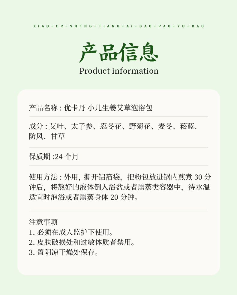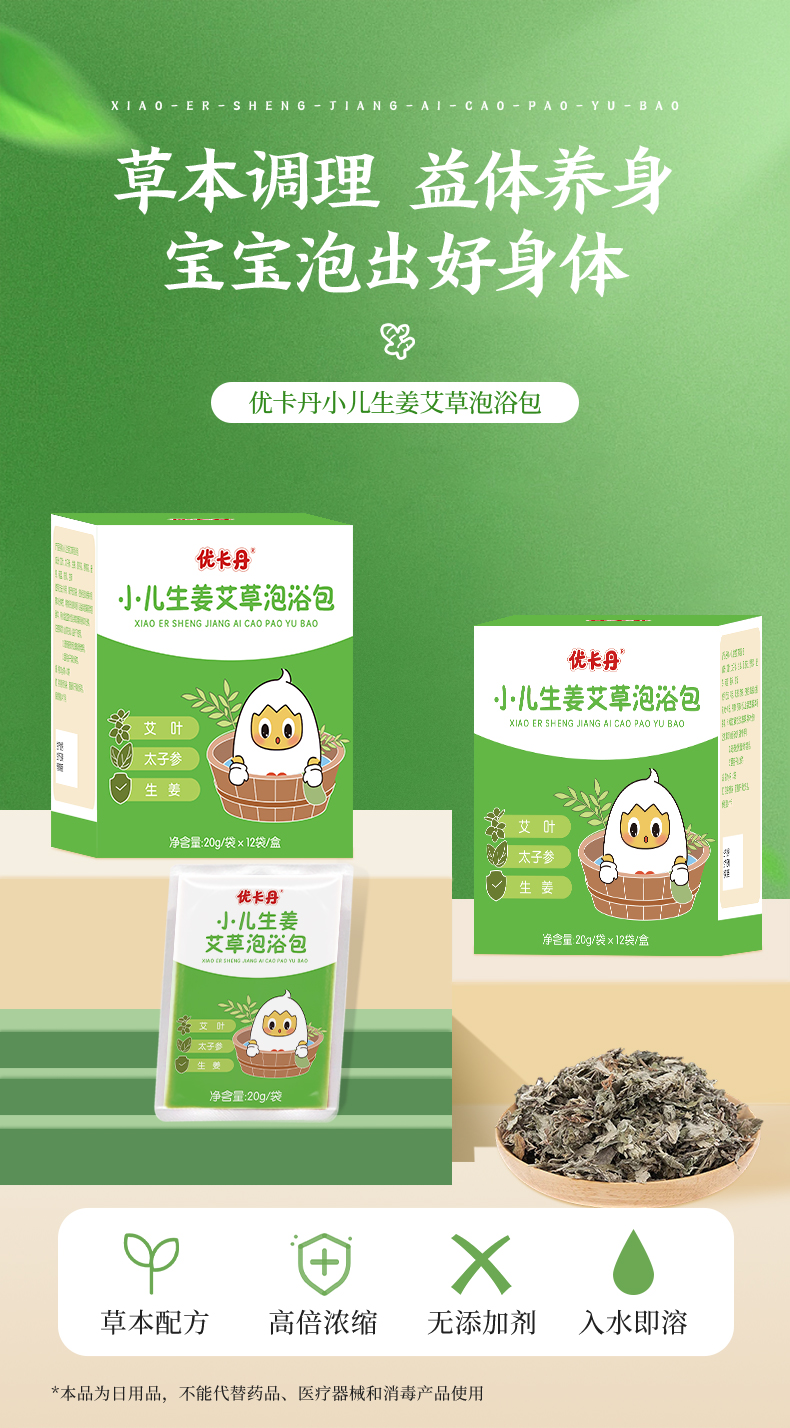 產(chǎn)品名稱:優(yōu)卡丹 小兒生姜艾草泡浴包