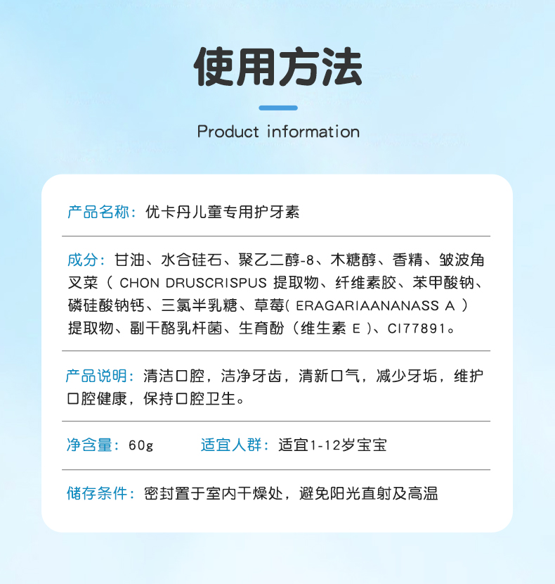產(chǎn)品名稱:優(yōu)卡丹兒童專用護(hù)牙素
