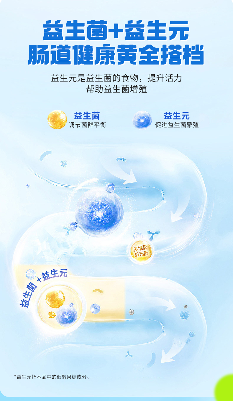 原料:低聚果糖、嗜酸乳桿菌、乳雙歧桿菌