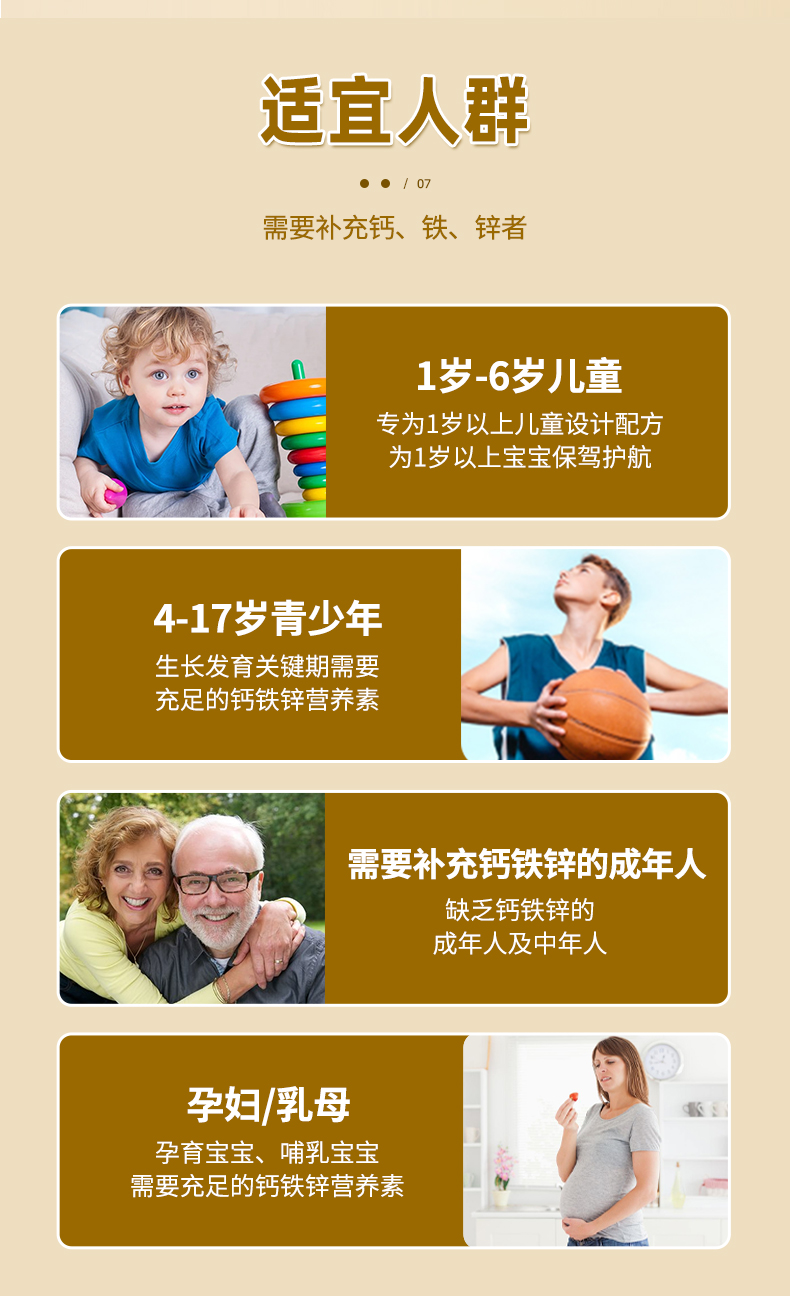 適宜人群:需要補充多種礦物質(zhì)的1-17歲人群及成人、孕婦、乳母