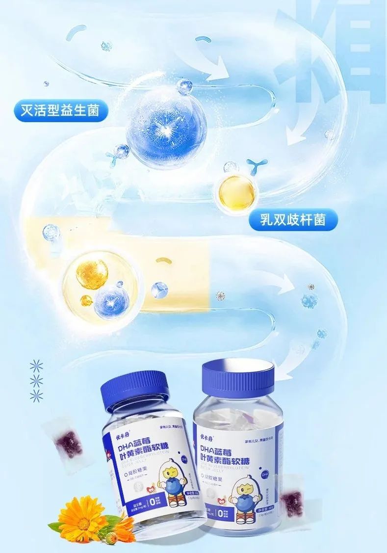 優(yōu)卡丹DHA藍(lán)莓葉黃素酯軟糖特別添加了滅活型益生菌——乳雙歧桿菌,呵護(hù)著寶寶的腸道健康,讓營養(yǎng)吸收更加順暢,為寶寶的整體健康打好基礎(chǔ),成長無憂。