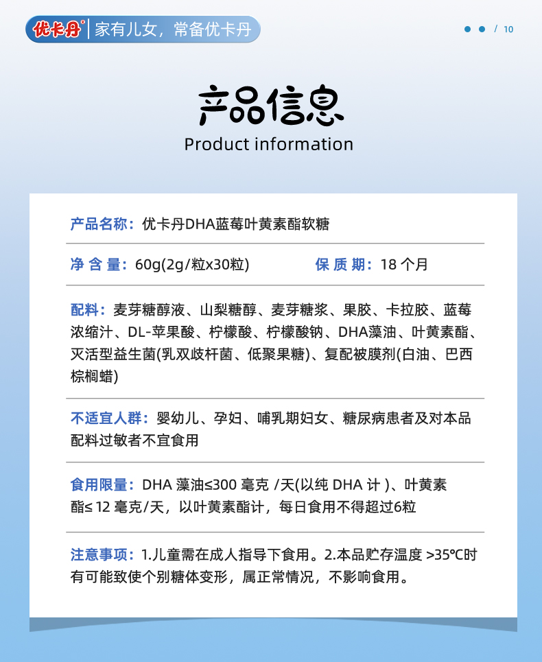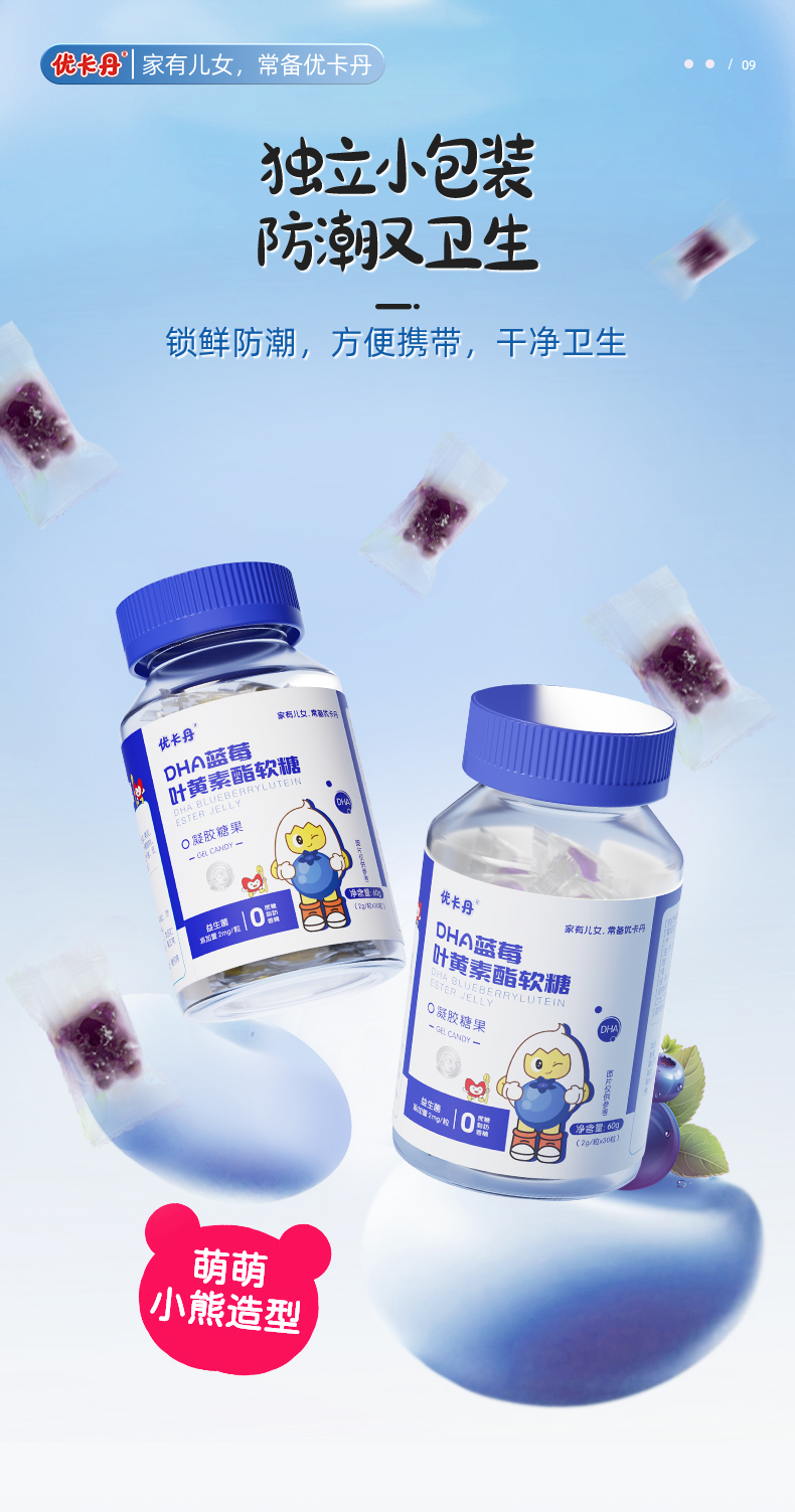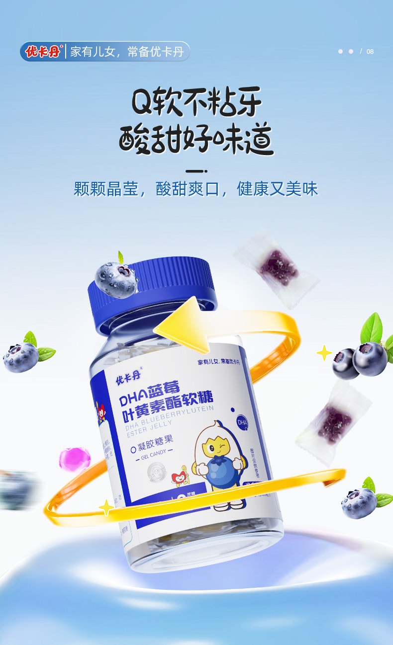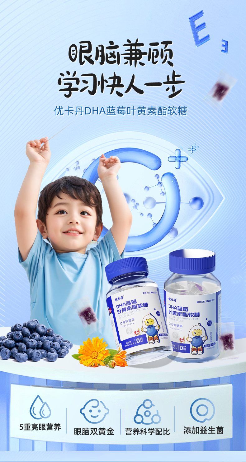 【產(chǎn)品名稱】優(yōu)卡丹DHA藍莓葉黃素酯軟糖