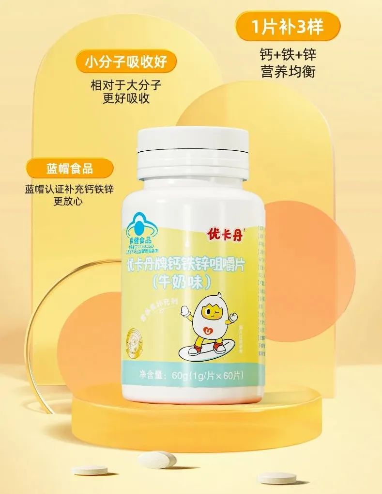 優(yōu)卡丹牌鈣鐵鋅咀嚼片│鈣鐵鋅同補(bǔ),抓住黃金期,成長(zhǎng)沖新高