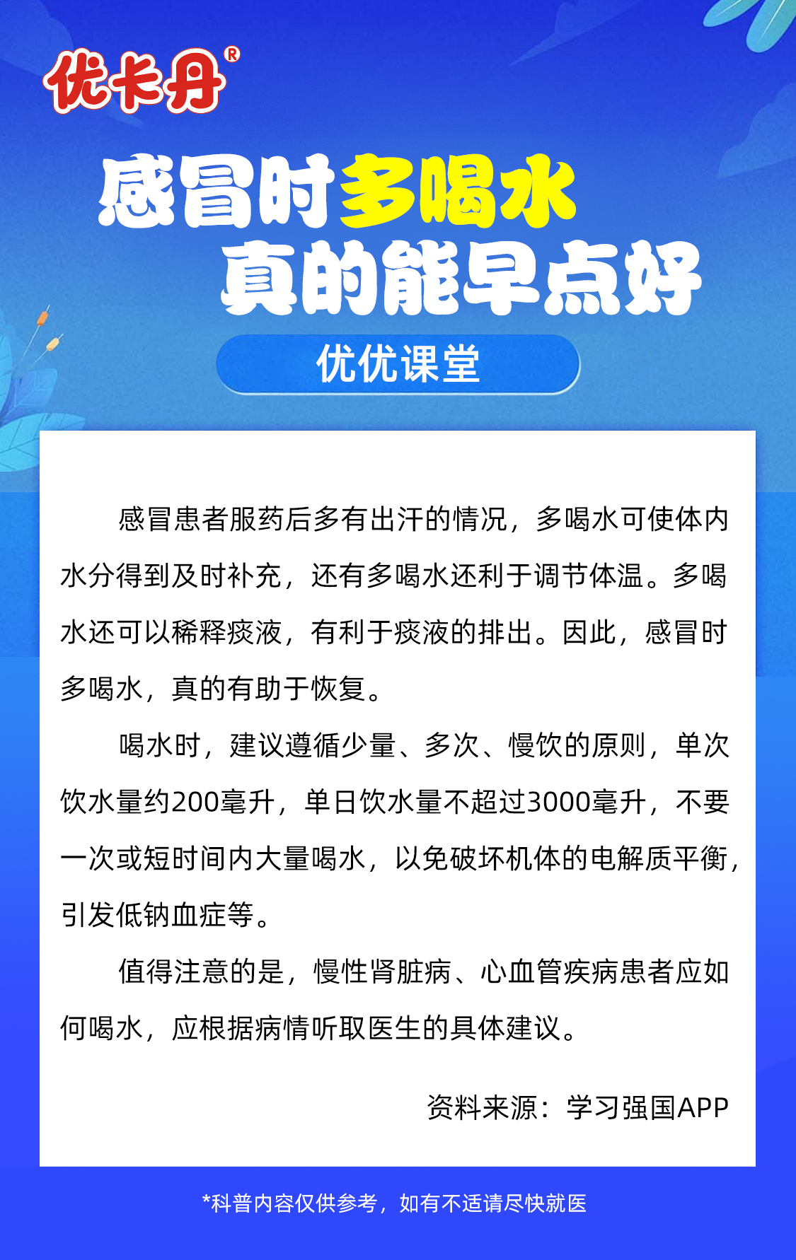 優(yōu)優(yōu)課堂│感冒時(shí)多喝水,真的能早點(diǎn)好?。?/li>