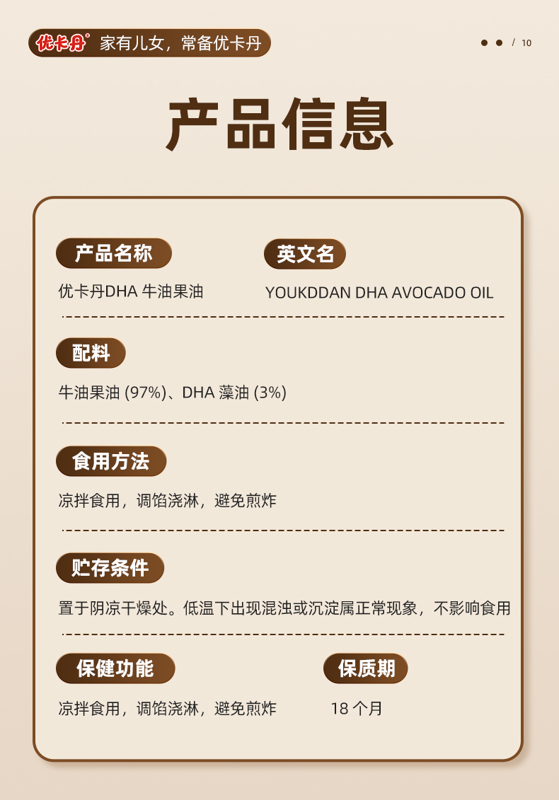 【產(chǎn)品名稱(chēng)】?jī)?yōu)卡丹DHA 牛油果油