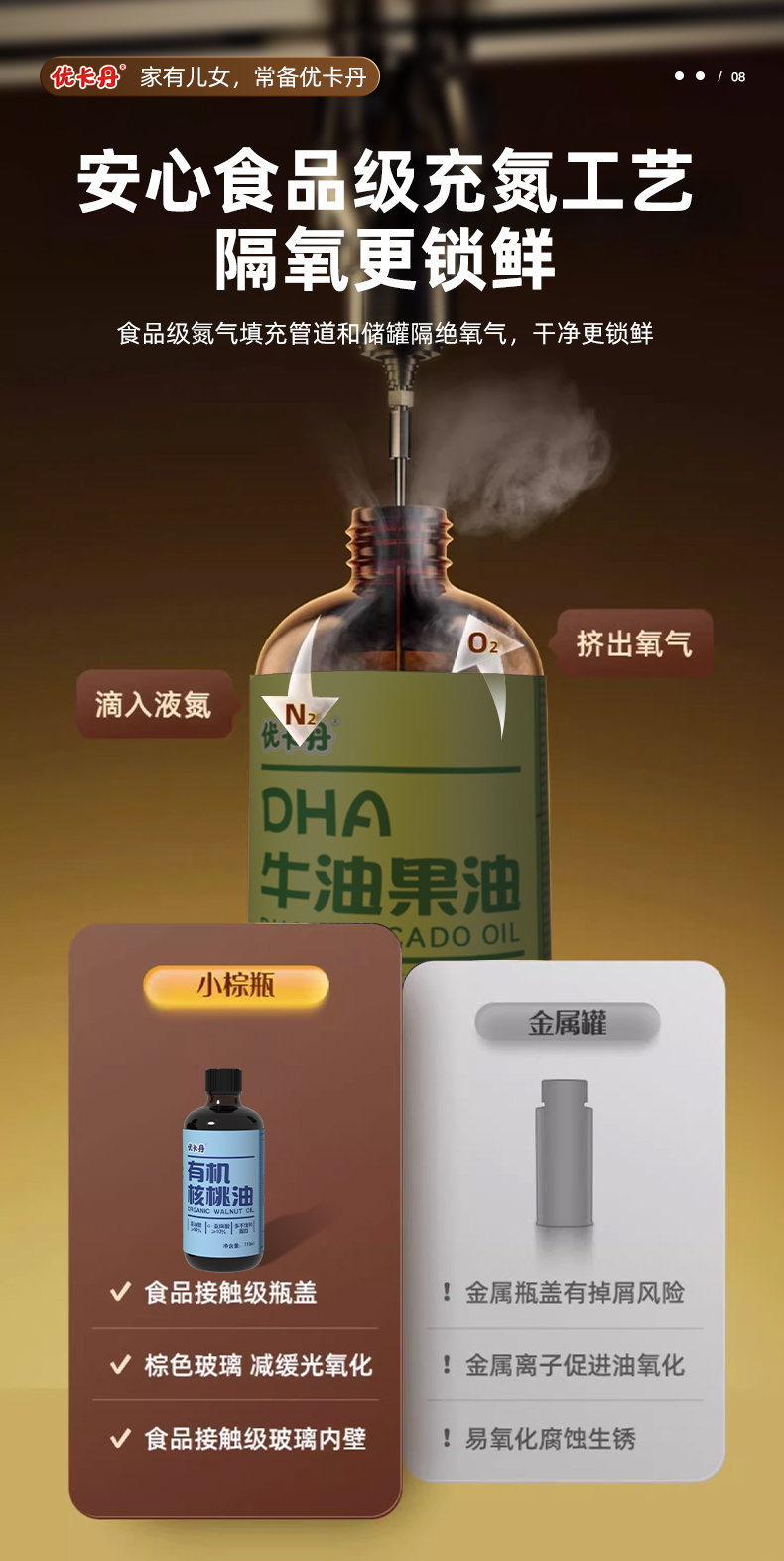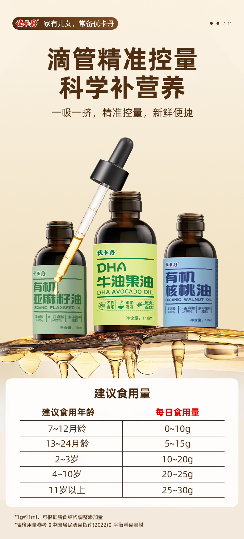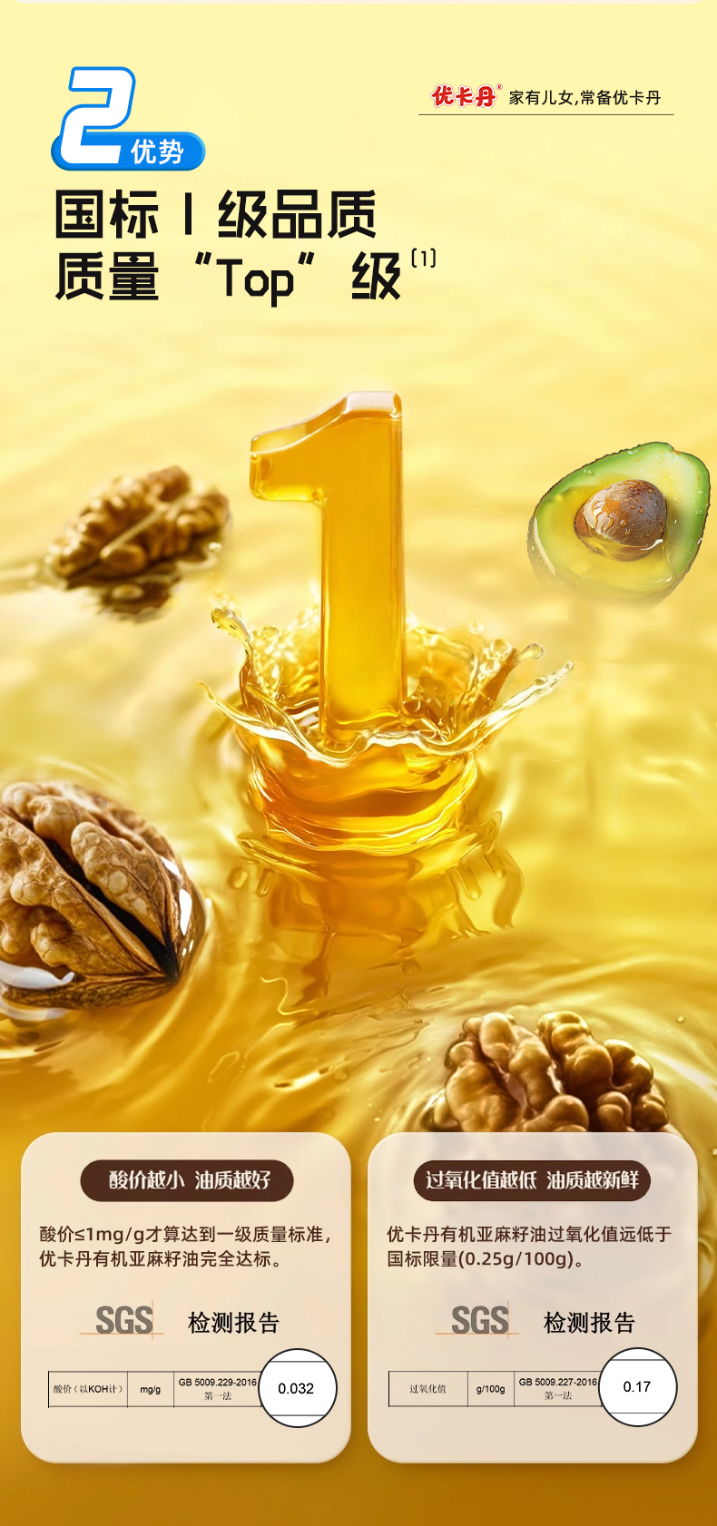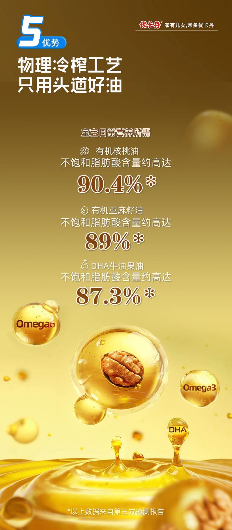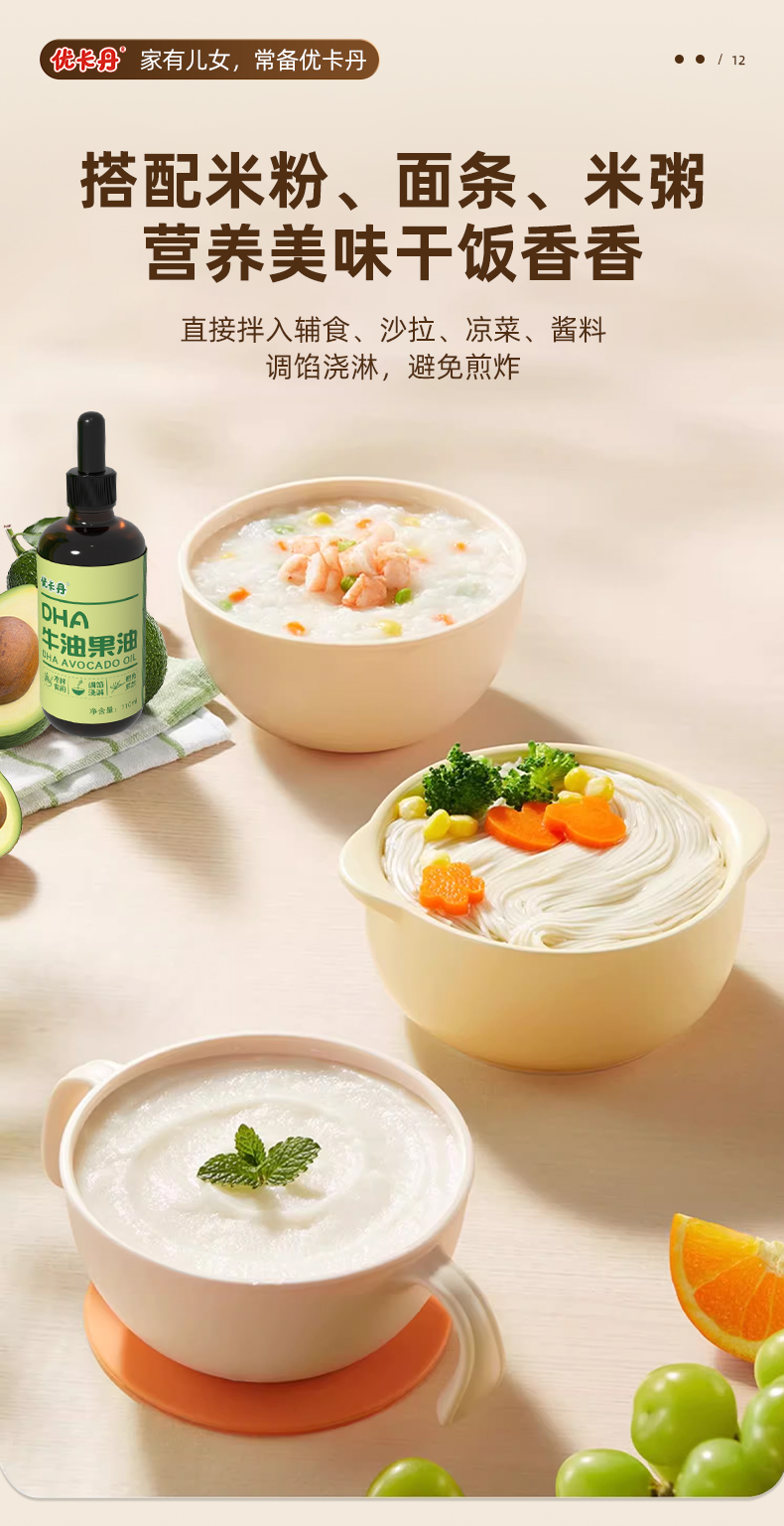 【產(chǎn)品名稱】?jī)?yōu)卡丹有機(jī)核桃油+有機(jī)亞麻籽油+DHA 牛油果油